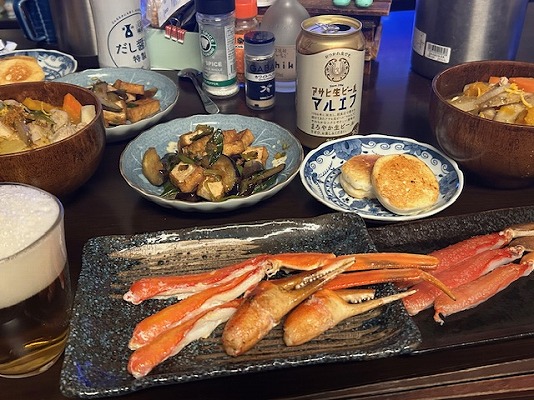 11月頃、カニが高くなるとの情報があったらしく、高くなる前に購入したカニが届いたのでステーキと刺身にしました。