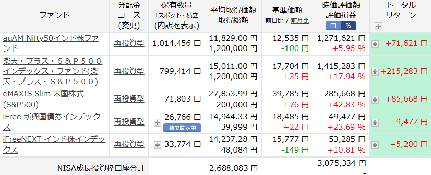 楽天証券で買ってる、投資信託を見てみましょう。