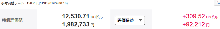 楽天証券の評価損益額合計は、米国株を合わせて約109万8千円。