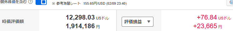 楽天証券の評価損益額合計は、米国株を合わせて約113万4千円。