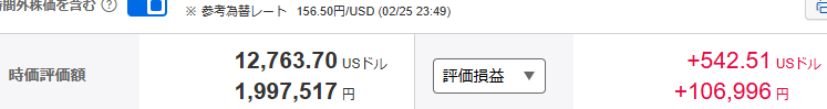 楽天証券の評価損益額合計は、米国株を合わせて約116万7千円。