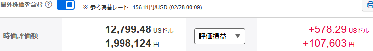 楽天証券の評価損益額合計は、米国株を合わせて約129万6千円。