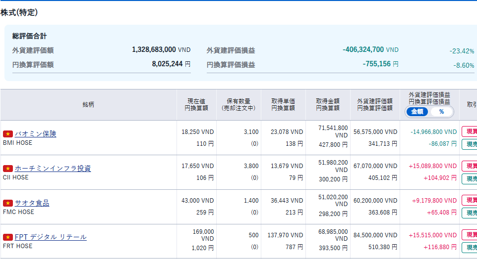 ベトナム株は、どうだったでしょうか?