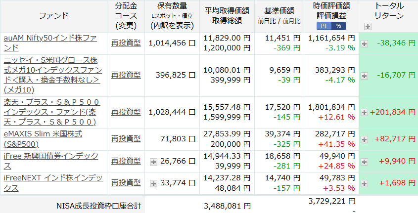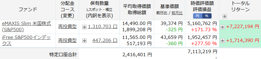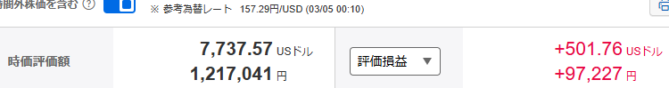 楽天証券の評価損益額合計は、米国株を合わせて約100万4千円。