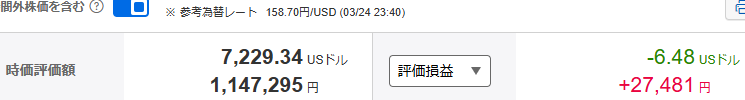 楽天証券の評価損益額合計は、米国株を合わせて約92万7千円。