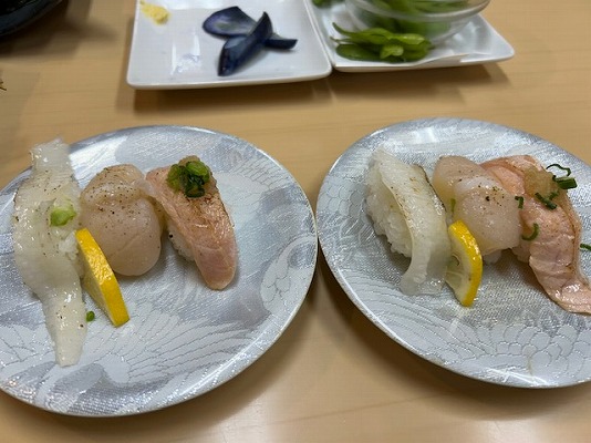 昨日は、富貴ゴルフ倶楽部でゴルフをして約1万6千歩も歩いて疲れたので、夕食は近所の回転寿司の「活鮮」に行ってきました。