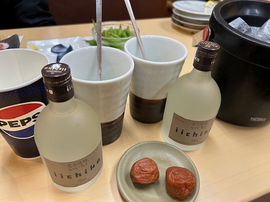 ここで、ビールが無くなったので、いつものようにいいちこのミニボトルを頼みました。