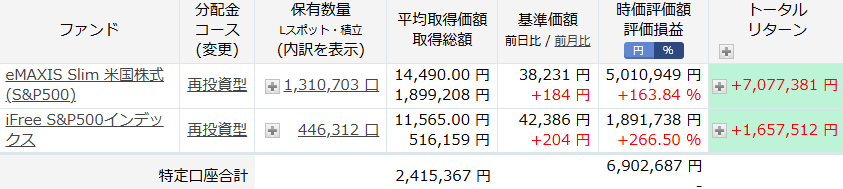 投資信託全てのトータルリターンは、11,924,836 円