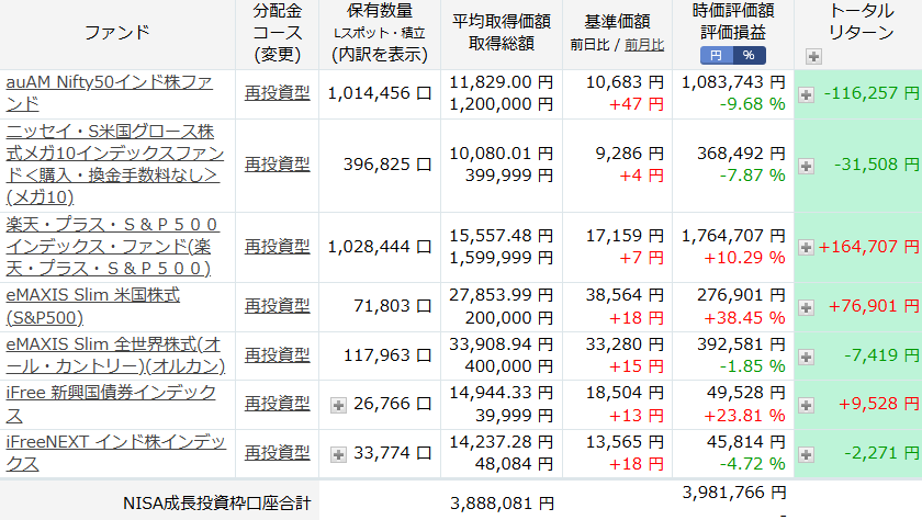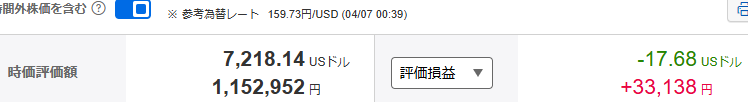 楽天証券の評価損益額合計は、米国株を合わせて約107万円。