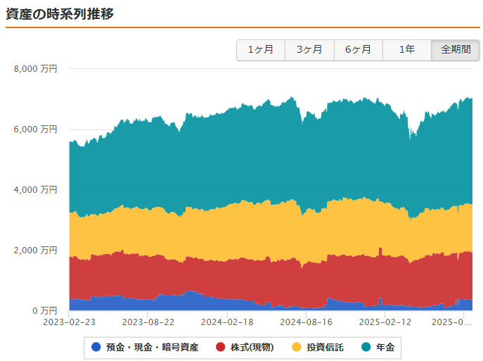 資産集計を、おかねのコンパスからマネーフォワード for 住信SBIネット銀行に切り替えてから、時系列で増減のグラフを見ることが出来るようになりました。