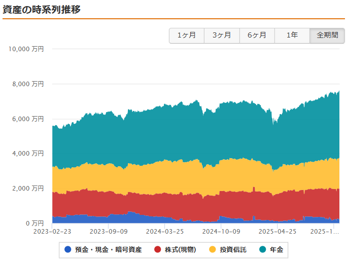 資産集計を、おかねのコンパスからマネーフォワード for 住信SBIネット銀行に切り替えてから、時系列で増減のグラフを見ることが出来るようになりました。