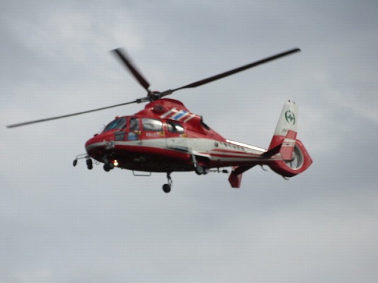 写真撮影をしながら頂上に居ると、なにやらヘリの飛行音が近付いてきました。