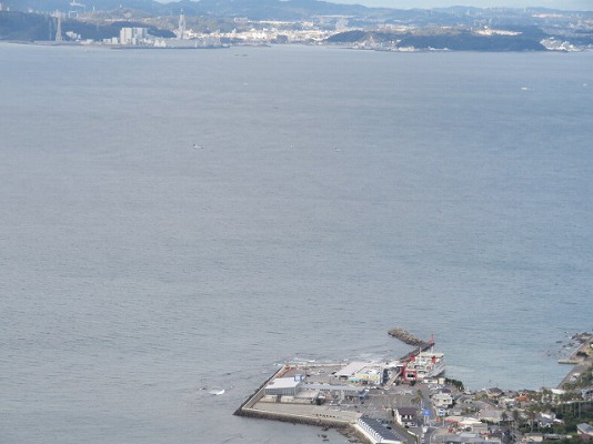 で、真上の白い建物などがあるところが横須賀の久里浜港です。