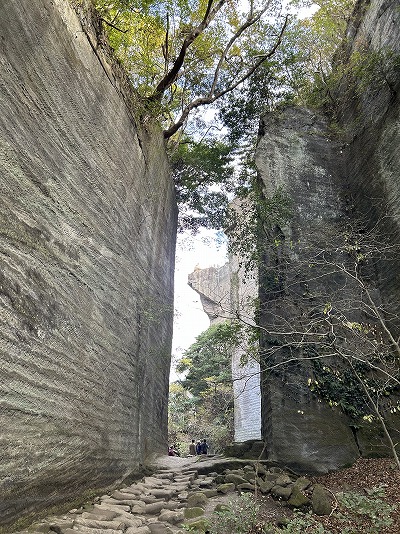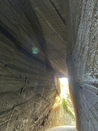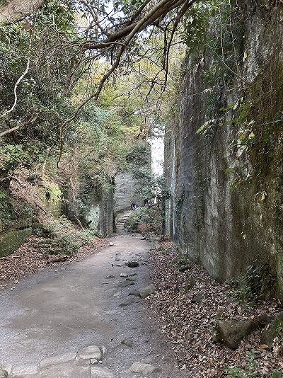 こんな感じの岩を削ってできた道を歩いていきます。
