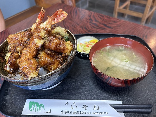 妻は、あなごと海老の天丼にしました。