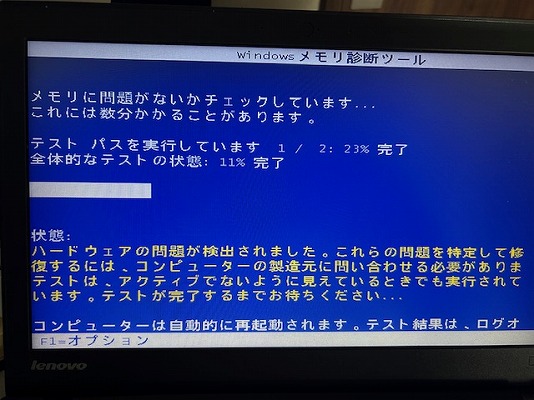 ですので、次のWindowsメモリ診断ツールを試してみる事にしました。