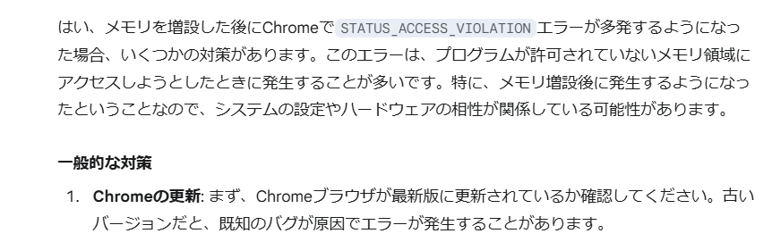で、Windowsメモリ診断ツールを行った後は、例のエラーコード:STATUS_ACCESS_VIOLATIONが出なくなったんです!