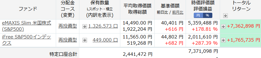 投資信託全てのトータルリターンは、13,110,311 円