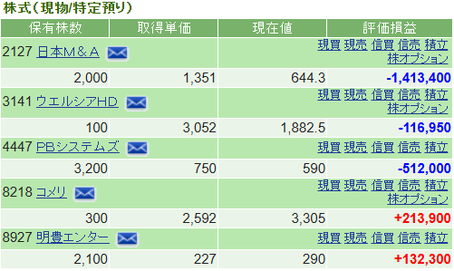 投資郎の保有株式はどうだったでしょうか?