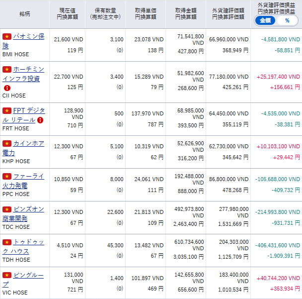 楽天証券の評価損益額合計は、米国株を合わせて約70万2千円。