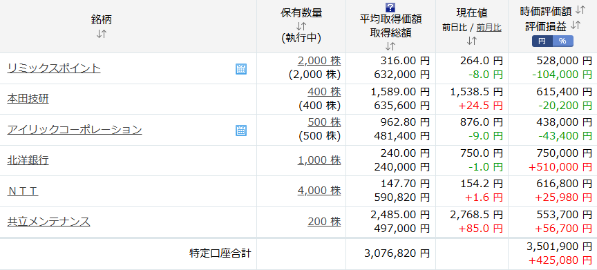 昨日は、含み損が約153万4千円でしたので、含み損が約19万8千円も減りました。