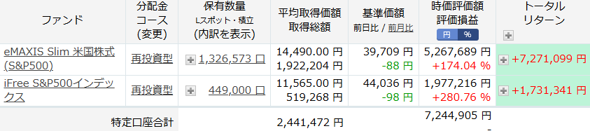 投資信託全てのトータルリターンは、12,826,126 円