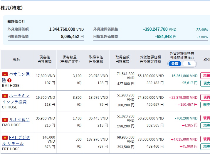 ベトナム株は、どうだったでしょうか?