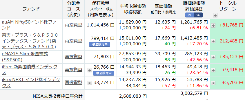 楽天証券で買ってる、投資信託を見てみましょう。